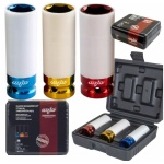 Das Komplettset umfasst drei 1/2-Zoll-Steckschlüssel, die sowohl für Druckluft- als auch für Akkuschrauber geeignet sind.